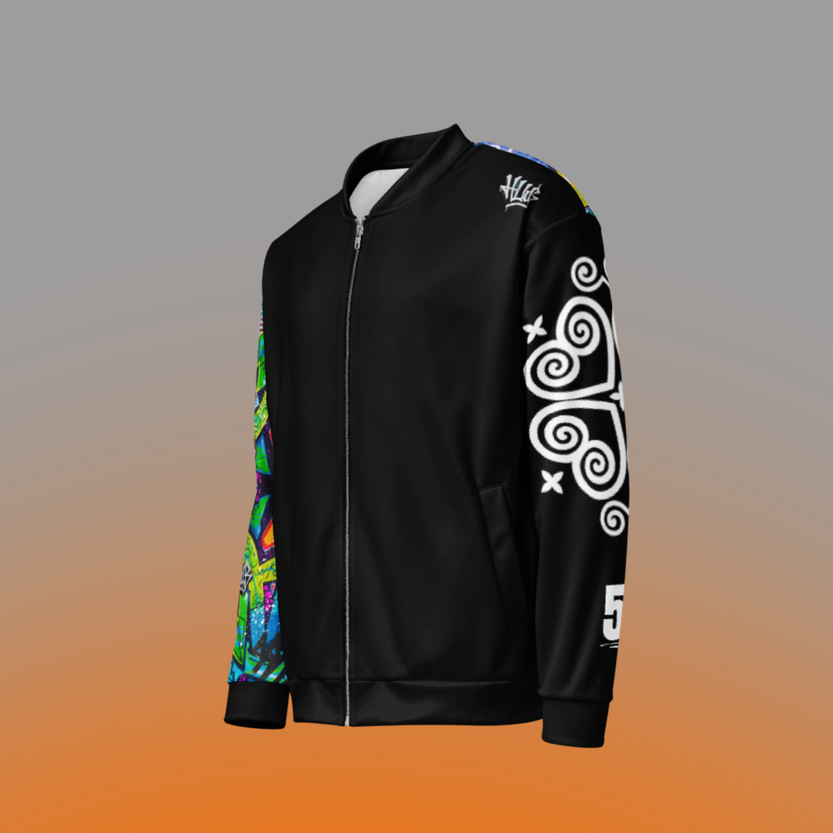 Two worlds collide on this bomber in the best way possible. The raw energy of graffiti meets Hmong artistry, creating something completely different. Every angle shows you something new - from the street-style letters to the remixed Hmong patterns.